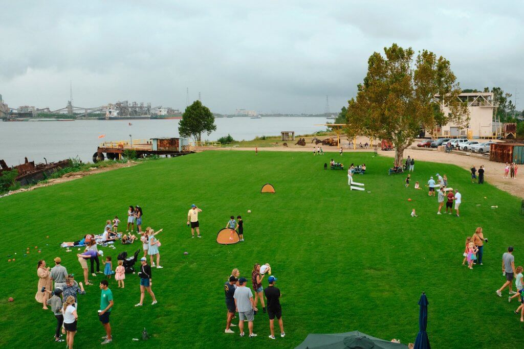 This new space is meant to feel distinctly New Orleans — casual, social, and tied to the rhythm of the river. Whether you’re enjoying a picnic at dusk, relaxing with a drink after biking the levee, or grabbing a bite with friends on the lawn, The Batture invites people to slow down and soak in the view. It’s a place for neighbors and families to gather, with a mix of open green space and local businesses that reflect the city’s charm and creativity.